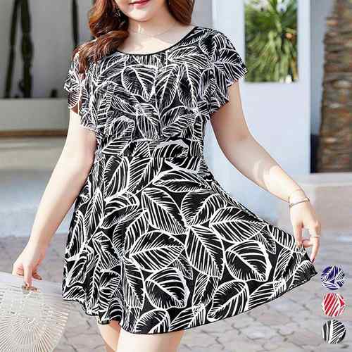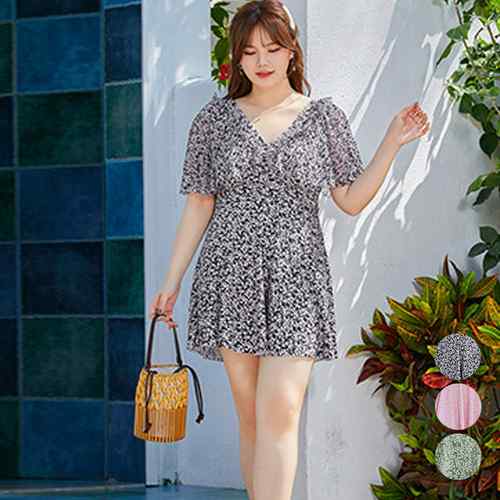 レディース 体型カバー水着 大きいサイズ 大人可愛い ワンピース水着 着やせ 韓国風スイムウェア 露出控えめ ママ水着 フレアワンピ水着柄 30代40代50代 リゾート水着 温泉