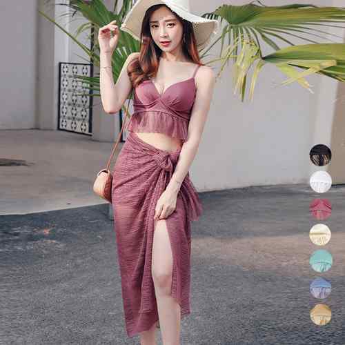 可愛いビキニ シフォン生地 セパレート スイムウエア ブラトップ ボクサーパンツ 7色 無地 水着 温泉 大人 体型カバー水着 日焼け防止 水着 セパレート 水着
