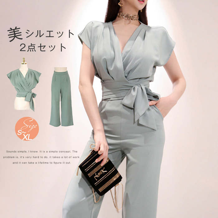 2piece set up コーデしやすい~ シンプルデザイン パンツドレス 2点セット ♪レディースファッション スーツ セットアップ パンツスーツ