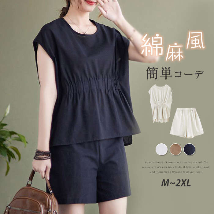 柔らかな麻混素材 涼やか リネンセットアップ Two-piece set ♪レディースファッション スーツ セットアップ パンツスーツ