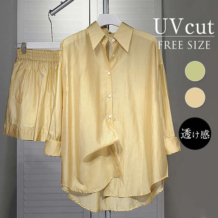 UVカット シアーシャツ × ショートパンツ 2点セット Two-piece set ♪レディースファッション スーツ セットアップ パンツスーツ