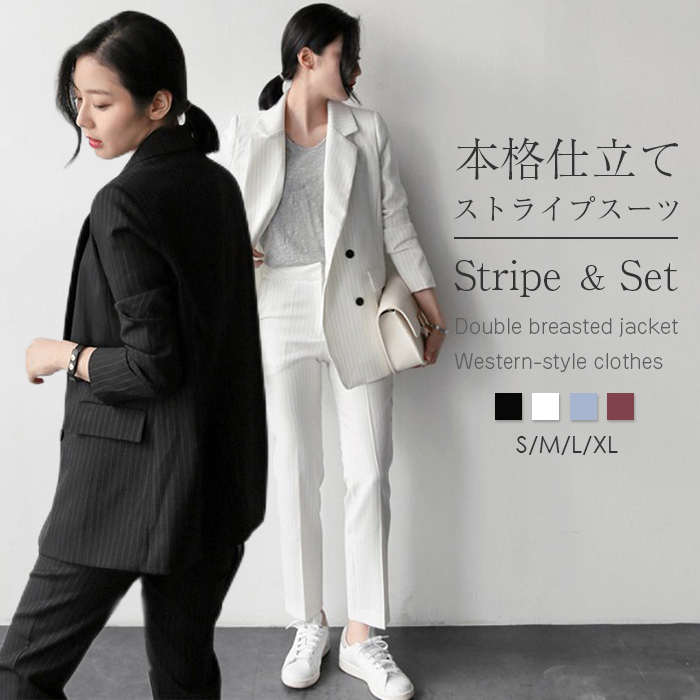 スーツ レディース 卒園式 入学式 セットアップ フォーマル 大きいサイズ パンツスーツ ストライプ ジャケット 上下セット 2点セット おしゃれ カジュアル オフィス 洗える 説明会 面接 結婚式