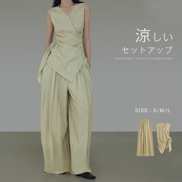 快適な素材 タンクトップ+ワイドパンツの夏物上下セット♪ ワイドパンツ 夏 タンクトップ レディース 上下セット 薄手 ゆったり おしゃれ イージーパンツ