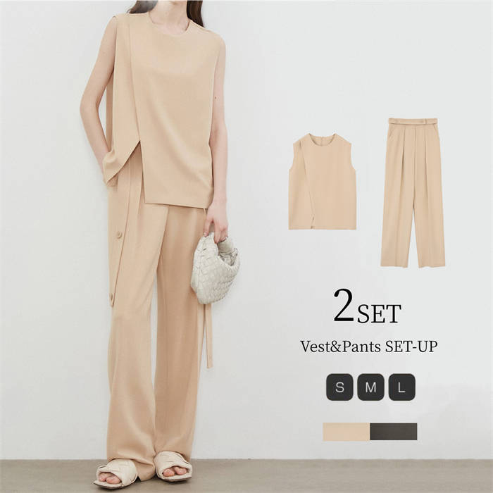 選べる ベスト ワイドスーツパンツ 2点セット 20代 30代 40代 50代 ベージュ グレー Pants Suit 春 夏 秋 S M L 二次会 パーティー お呼ばれ 女子会 お食事会 結婚式マ
