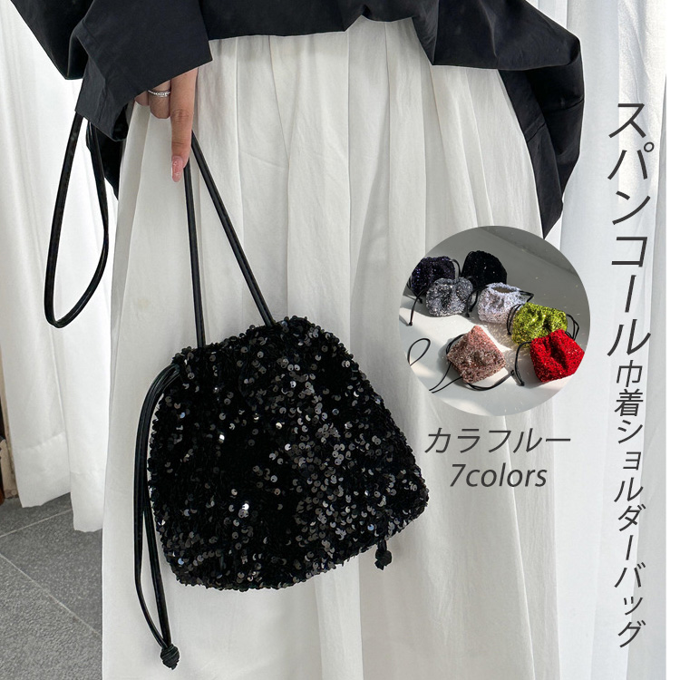 スパンコールづき巾着バッグ 巾着2 ショルダーバッグ 斜めかけショルダーバッグ 財布バッグ お出かけ おでかけ カジュアル おしゃれ オシャレ 可愛い かわいい きれいめ キレイめ