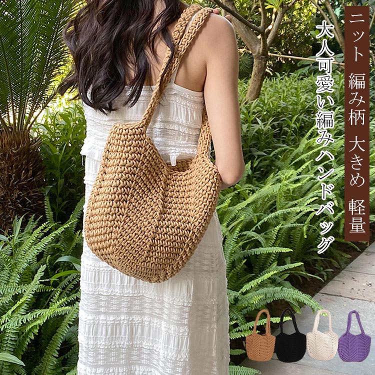 ハンドバッグ バッグ 草編みバッグ 編みバック 麦わら かばん 2サイズ レディース マザーズバッグ 大きめ 夏 肩掛け 大容量 手提げ 軽い 軽量 通勤 旅行 シンプル おしゃれ
