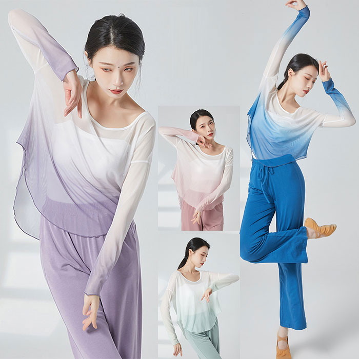 ダンス ヨガ バレエ トップス シースルー メッシュ 美しい グラデーション おしゃれ レディース ダンス トップス ロング丈 バレエ ベリーダンス 社交ダンス レッスン着 ストレッチ 伸縮性 ドルマ