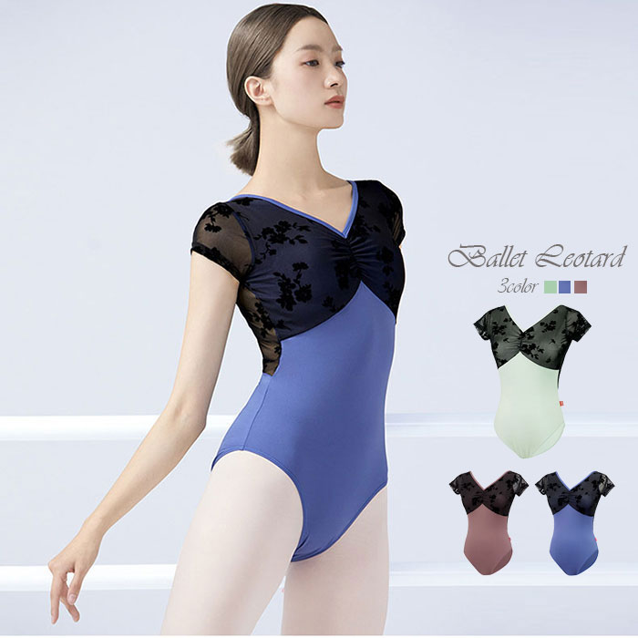 バレエ レオタード 大人 ジュニア 花柄 ベロア 切替 半袖 レオタード スカートなし エレガント Vネック 大人バレエ バレエ用品 レッスン 着 大人用 バレエ バレエレオタード 大人 ジュニア 可