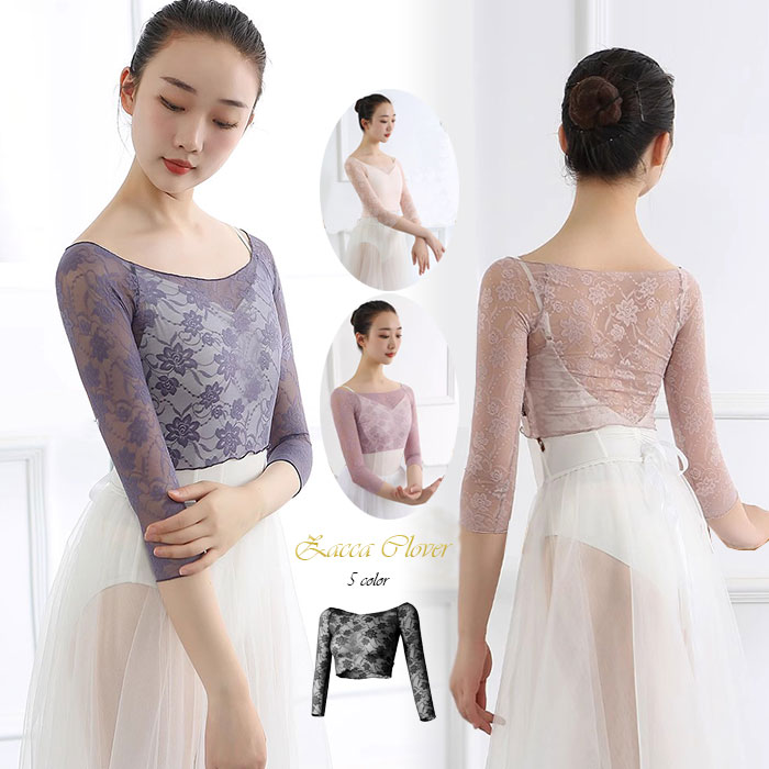 バレエ トップス 大人 メッシュ 7分袖 オフショルダー エレガント 素敵な花柄レース バレエトップス シャツ カットソー バレエ上着 動きやすい伸縮生地 冷え防止 ウォームアップ トップス バレエ