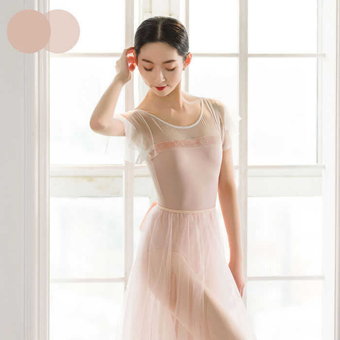 バレエ レオタード 大人 フレアスリーブ エレガント 大人用 バレエレオタード シースルー チュール おしゃれ 大人のレオタード 胸パッドポケット付き 大人バレエ バレエ用品 大人 バレエレオタード