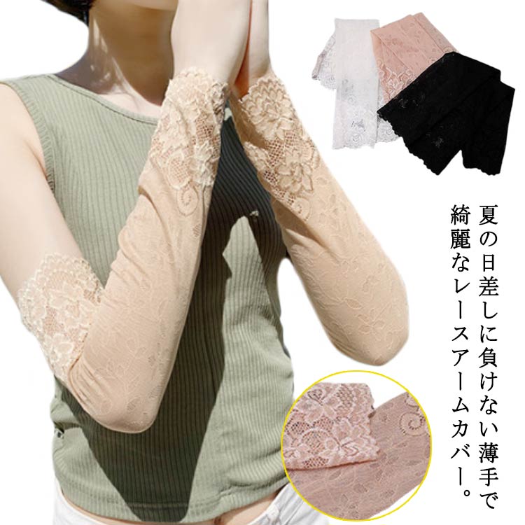 ロングレースアームカバー 指なし タトゥー隠し レースアームカバー 夏対策グッズ スポーツ 腕カバー