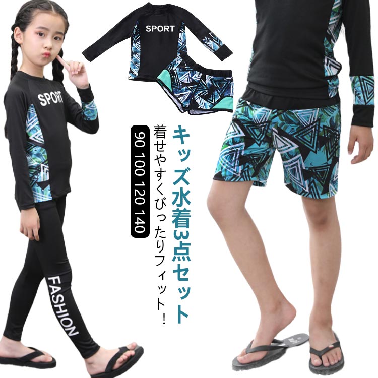 子供 キッズ 3点セット 小学校 kids 水着 上下セット 女児用 子ども 海水浴 プール ビーチ スクール 練習用 水着 水遊び ベビー 長袖 ラッシュガード男の子 水遊びジュニア