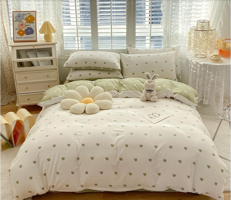ハート柄 大人気 4色 新生活 韓国風 3点セット 寝具カバーセット 掛け布団 ベッド用品 1.2 フラットシーツ ボックスシーツ シングル セミダブル ダブル 4点セット1.5 1.8