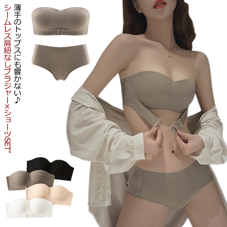 シームレス ブラジャー ショーツ セット 涼しい ストラップ取り外し可能の2 盛れるブラ チューブトップ シームレスショーツ 背中見せ ブラジャー
