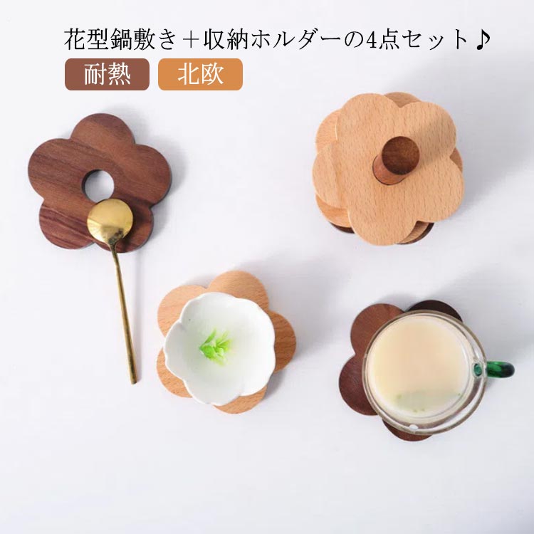 フラワー型の可愛いデザイン ホットパッド パーティーでも大注目 無垢材 ウッド 鍋敷き ウッドトレイ
