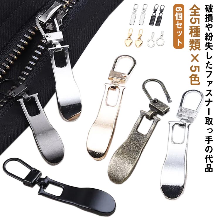 工具不要 取り付け簡単♪ 全5色 財布 ファスナー 引き手 とって 代用 ハート形 ポーチ バッグ ジップ 修理