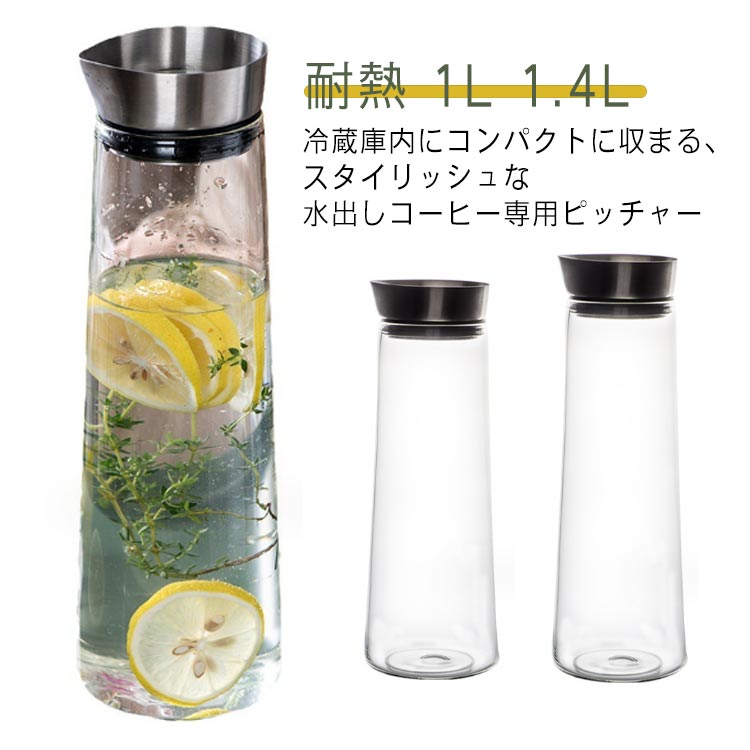 ステンレスフィルター付き ガス火対応 水差し 冷水筒 麦茶ポット ポット スリムなデザインがおしゃれなガラスポット スリムジャグ 耐熱ガラス
