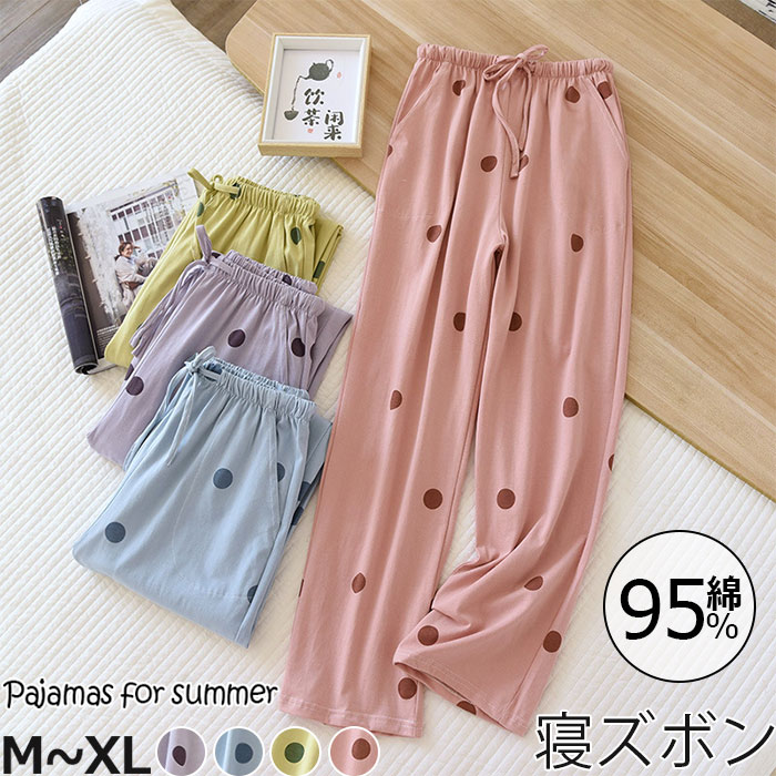 おしゃれな女性へ 母の日 プレゼント ギフト ドット柄ルームウエアパンツ ズボンボトムス パンツだけ ピンク グリーン ブルー 紫 M L XL