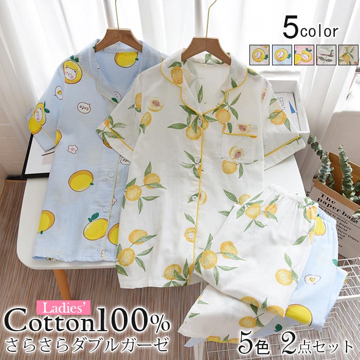 5色展開 可愛いパジャマ3点セット 二重ガーゼパジャマ 前開き ダブルガーゼ 部屋ぎ 春夏 薄手 涼しい
