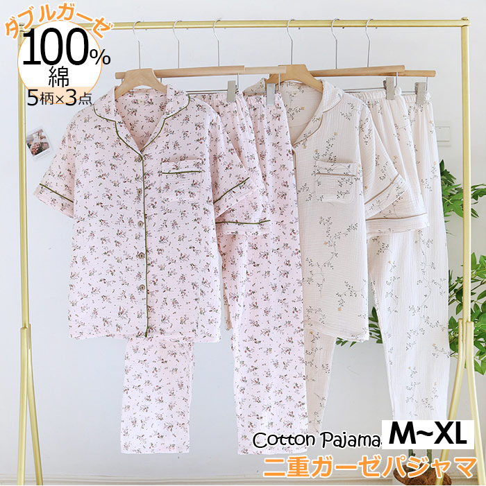 二重ガーゼパジャマ綿100 おしゃれ 母の日 プレゼントダブルガーゼパジャマ 二重ガーゼ ダブルガーゼ 丸首 ネック 花柄 和風パジャマ 春夏 薄手 涼しい