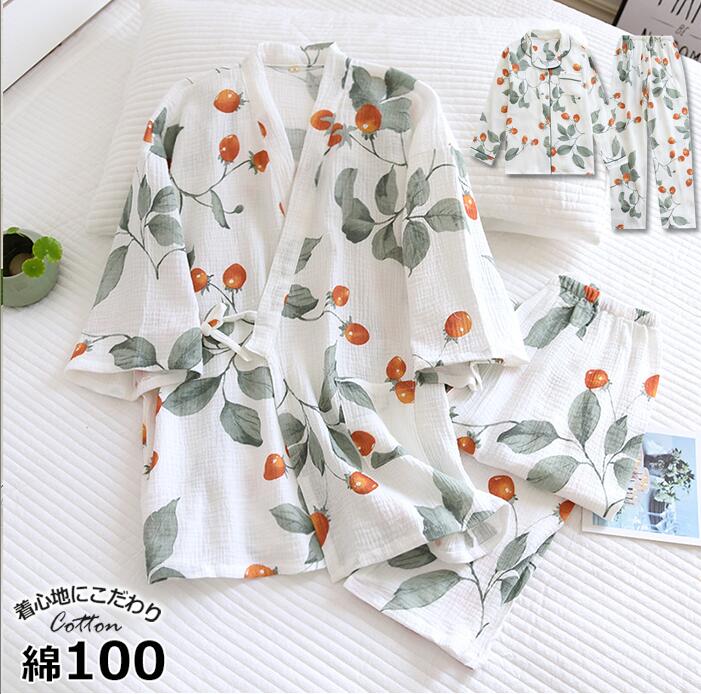 二重ガーゼパジャマ綿100 おしゃれ 母の日 プレゼントダブルガーゼパジャマ 二重ガーゼ ダブルガーゼ 丸首 uネック 花柄 和風パジャマ 春夏 薄手 涼しい
