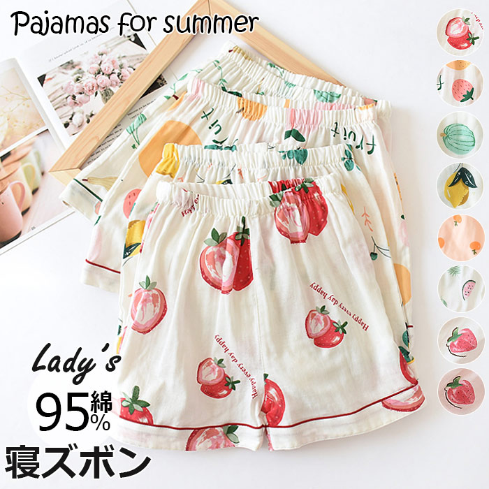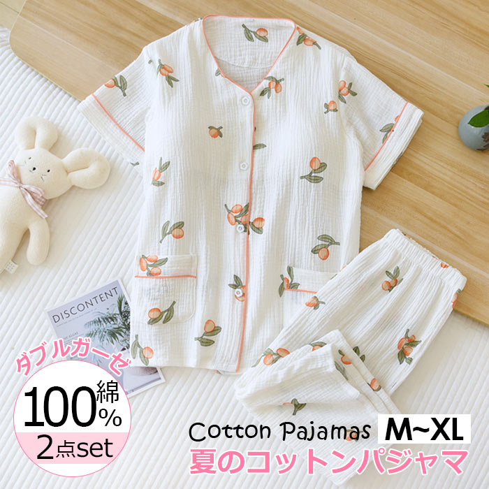 可愛いパジャマ女性 二重ガーゼダブルがーせ 半袖長ズボン 吸水性二重ガーゼ睡眠パジャマ女性20代30代40代 リラックスできる春夏に 可愛くて涼しい