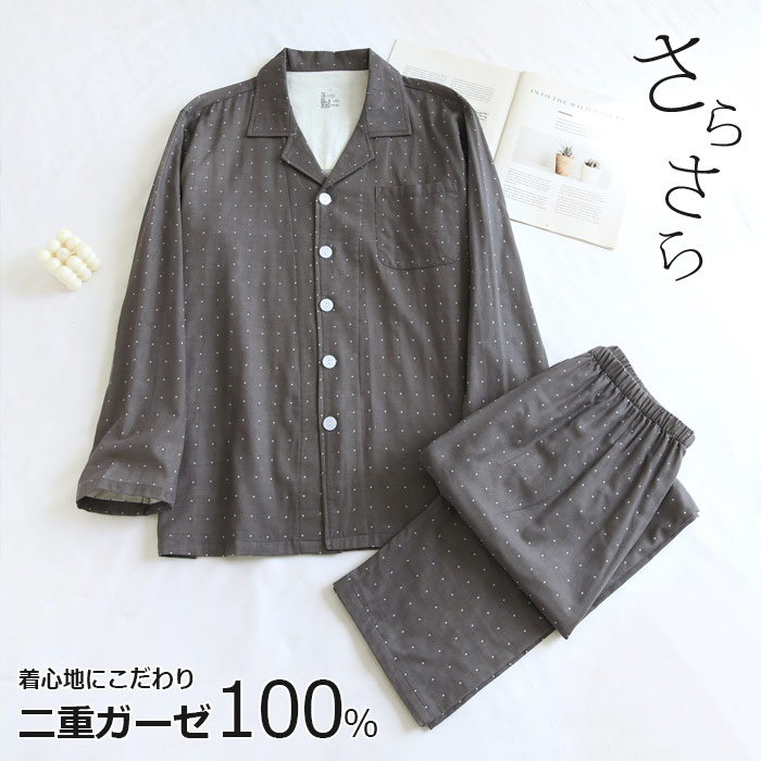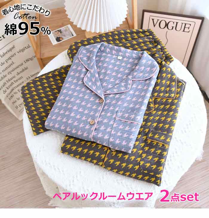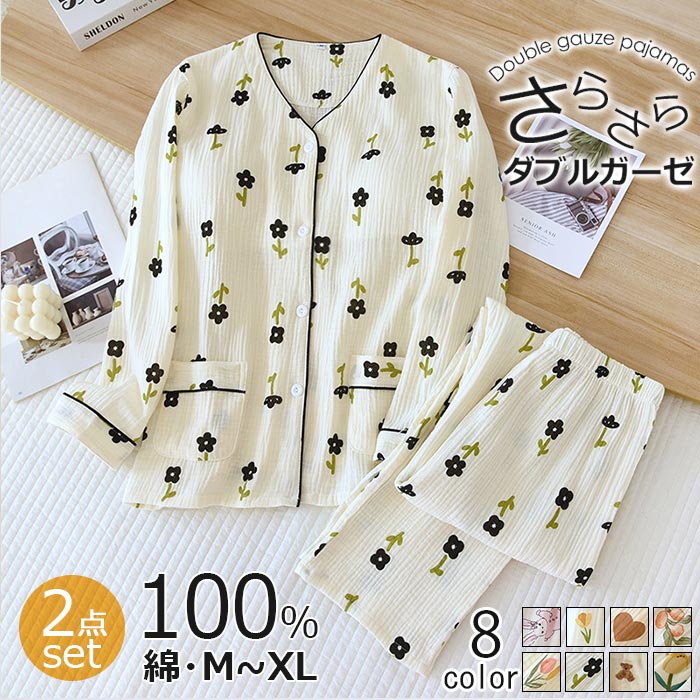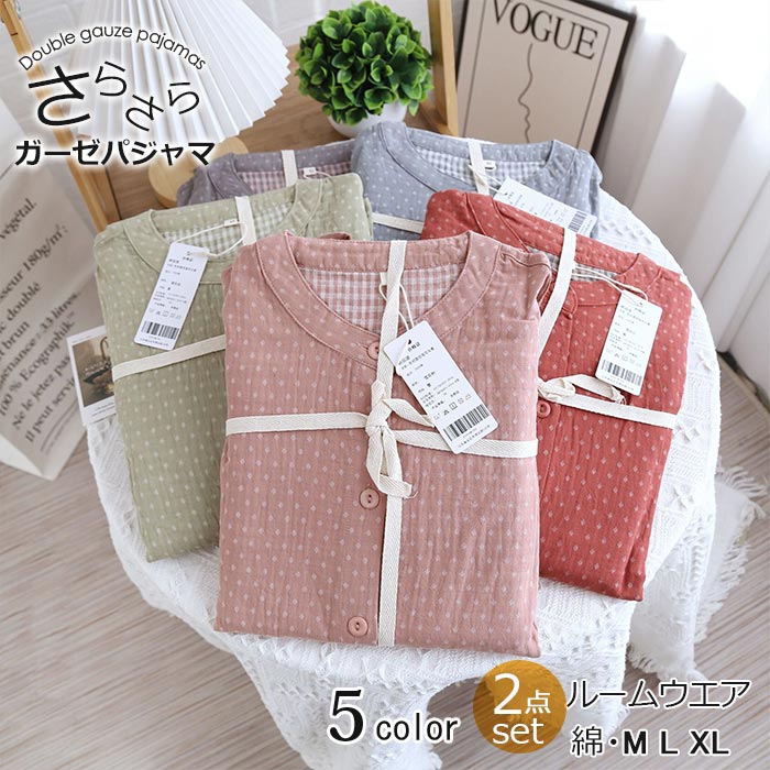 ダブルガーゼ ルームウェア ガーゼ パジャマ 綿100% 上下セット 2点セット 部屋着 ペアパジャマ 長袖 長パンツ ギフト 母の日 誕生日 プレゼント