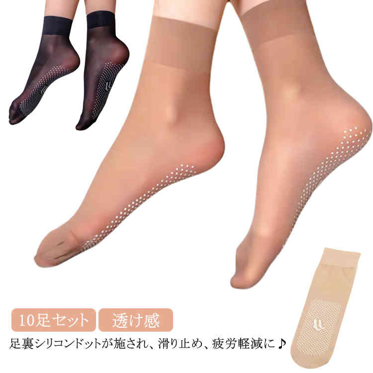足裏シリコンドットでしっかり防滑♪ ショートストッキング シースルーソックス 女性 婦人 透け 素足感覚 薄手 やわらか かわいい