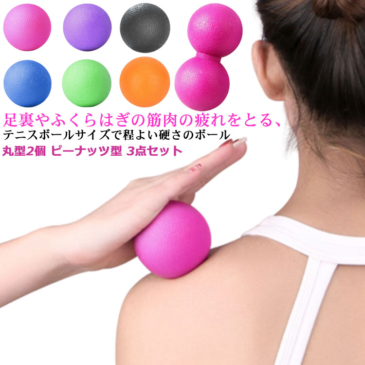 ツボ押し 筋膜リリース ラクロスボール 3点セット マッサージボール ストレッチボール 丸型2個 エクササイズ ピーナッツ型 ヨガボール リモート 筋トレ 肩こり 宅トレ 足裏 脚 背中 ヨガボール
