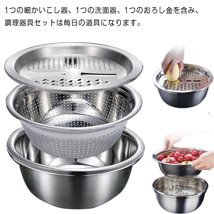 野菜 果物洗い ボウル 野菜カッター 直接加熱可能 おろし金セット ステンレス製 野菜カッター 水切り 米とぎ ザル 千切り スライサー