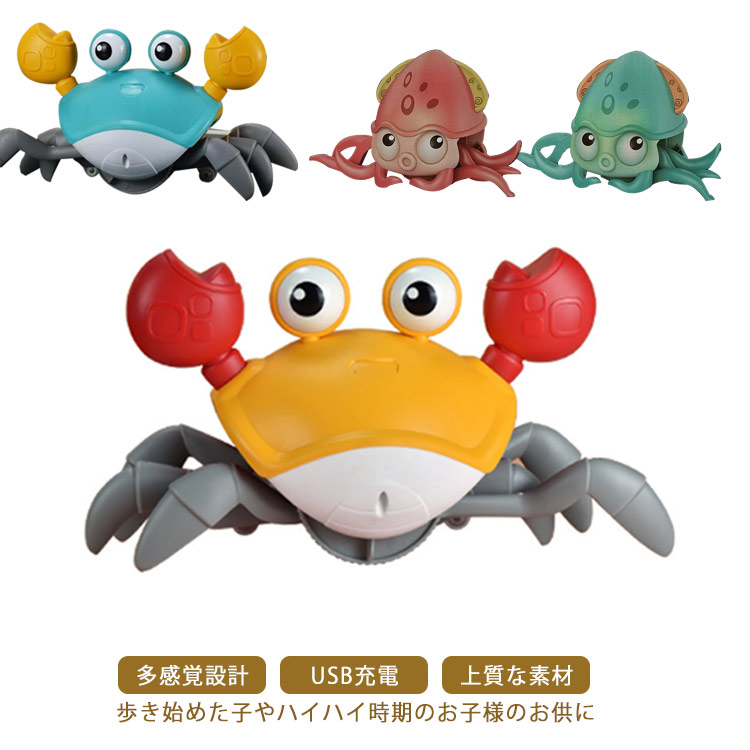 電気おもちゃ 子供向け 音楽 ライト付き 多感覚設計 たこ 動くおもちゃ 知育玩具 学習玩具 リズム 音楽