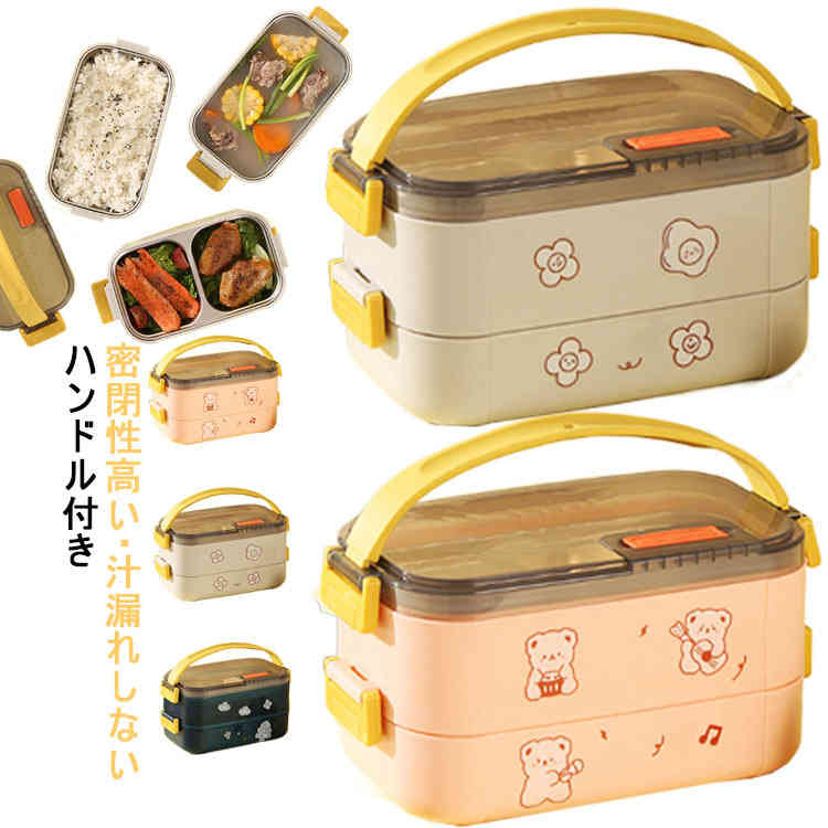 ランチボックス 2段 ピクニック 1200ml お弁当箱 大容量 ステンレス 可愛い ハンドル付き お弁当箱 漏れ防止 アウトドア 小学生 中学生 高校生 通勤