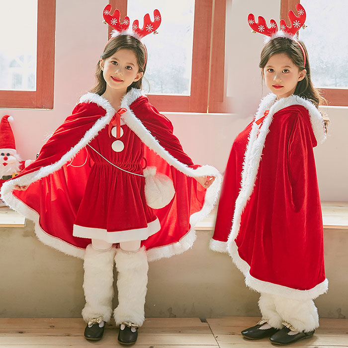 サンタ コスプレ マント ケープ 子供 キッズ 女の子 クリスマスケープ マント 110 120 150cm サンタ コス クリスマス パーティ 衣装 コスチューム 仮装 コスプレ サンタクロース ク