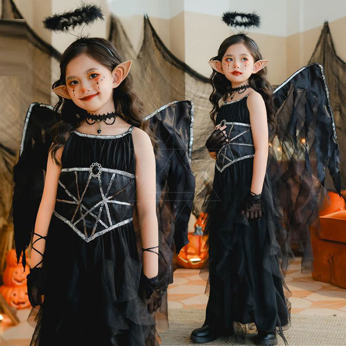 ハロウィン コスプレ 子供 黒 エンジェル 悪魔 仮装 衣装 子供 可愛い 天使の羽 巫女 魔女 コスチューム ハロウィンコスプレ 魔法少女 女の子 ハロウィン仮装 コスプレ衣装 デビル ゾンビ 吸血
