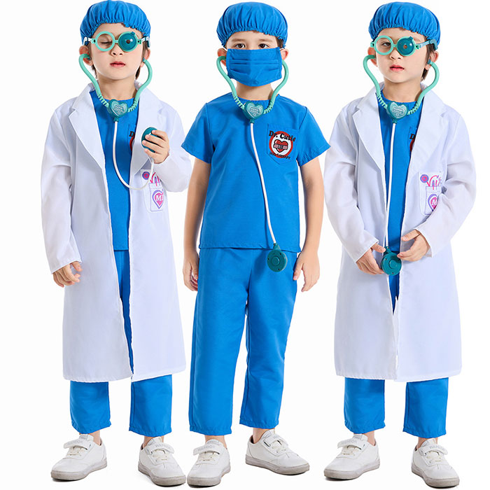 お医者さん 子供用白衣 キッズ コスチューム 衣装 ハロウィン 仮装 子供 男の子 女の子 ドクター コスプレ 聴診器付 6点セット