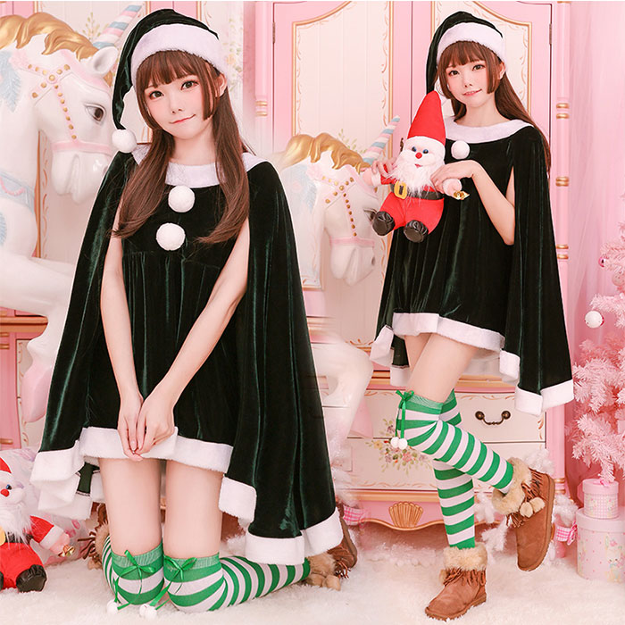 サンタ コスプレ ワンピース 帽子 2点セット レディース サンタコス 可愛い サンタ コスチューム 衣装 セット グリーン 緑 サンタクロース コスプレ 衣装 仮装 コス コスプレ衣装 サンタ衣装