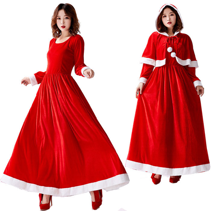 サンタ コスプレ レディース ロング ワンピース かわいい 2点セット ポンチョ ケープ サンタ 衣装 サンタコス 衣装 サンタ帽子 大人 サンタクロース 衣装 コスプレ 大きいサイズ レディース ロ