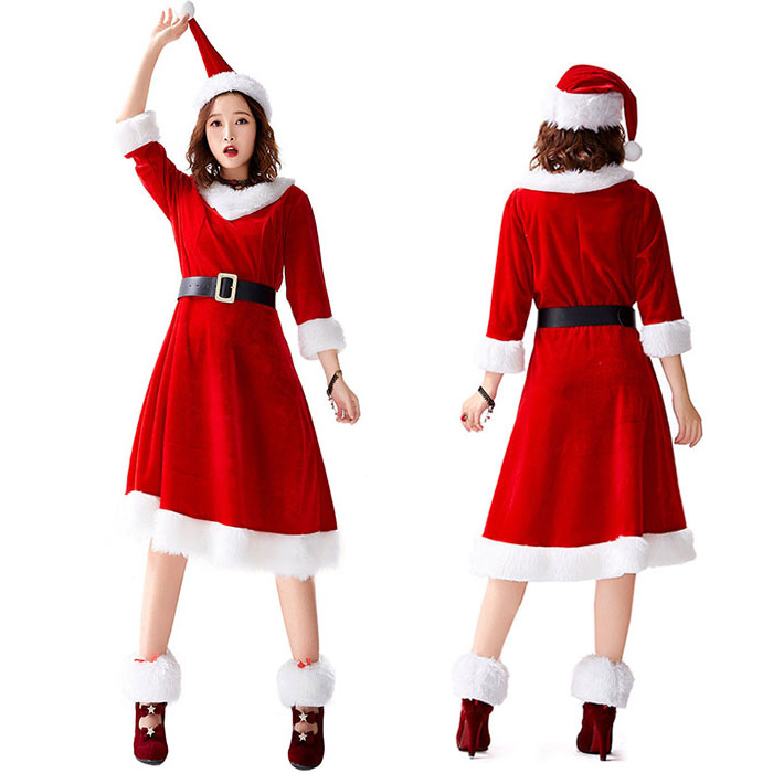 サンタ コスプレ レディース 膝丈 ワンピース かわいい 3点セット サンタ 衣装 サンタコス 衣装 サンタ帽子 大人 サンタクロース 衣装 コスプレ 大きいサイズ レディース ロング 長袖 クリスマ