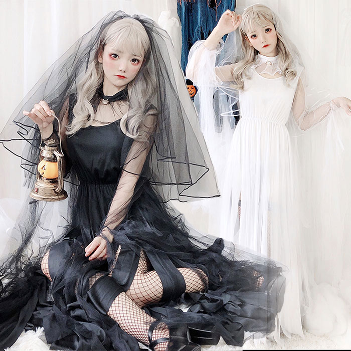 ハロウィン 花嫁 コスプレ 衣装 レディース 大人 花嫁ゾンビ 悪魔 デビル ワンピース ロング丈 マキシ丈 チュール ブラックホワイト 花嫁 仮装 衣装 ホラー ゾンビ デビル 花嫁ゾンビ バンパイ