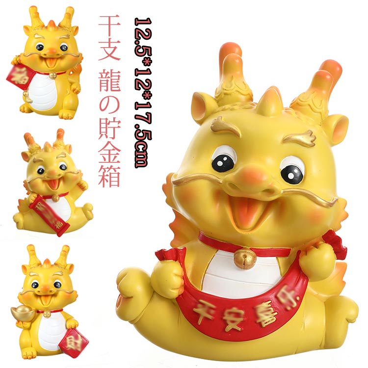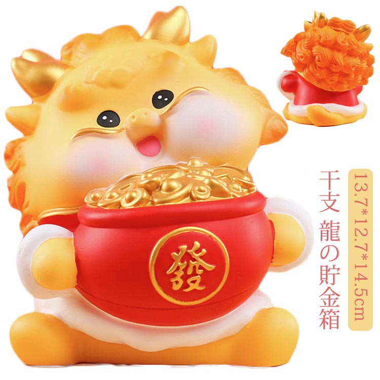 開運 動物貯金箱 ゴールド かわいい置物 貯金箱 干支 デスクトップ本棚装飾 アップ 金色 龍 金運 運気 龍の彫刻 風水 ラッキーアイテム インテリア コインバンク 幸運