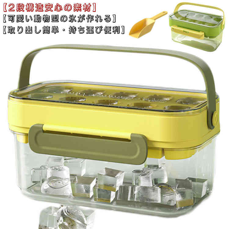 持ち手付きで持ち運び便利♪ 10個の可愛い動物型 製氷皿 製氷ケース 氷収納ボックス アイススコップ