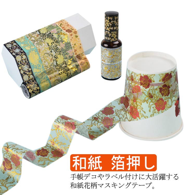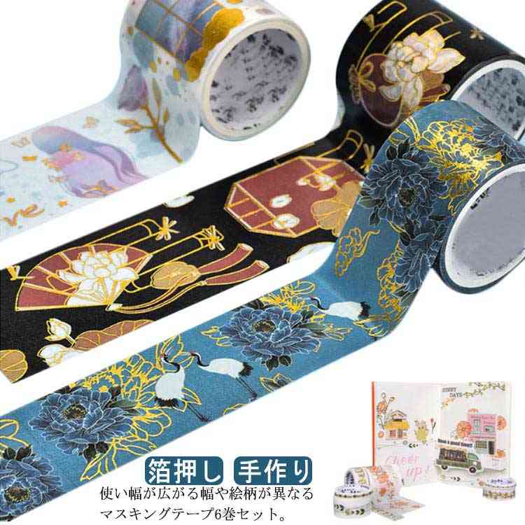 大小異なる6ロールセット マスキングテープ 絵画風 箔押し マステ DIY 手帳 ノート 飾り 貼る テープ