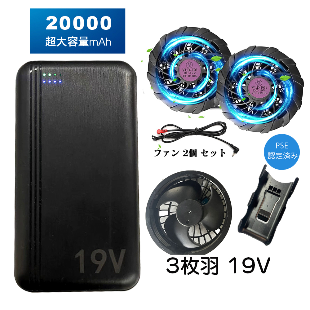 ファンバッテリーセット バッテリーファンセット 冷却ベスト用 空調作業服用 空調扇風ウェア用 扇風服用 作業服用 作業着 ファン付き 通気良い 扇風服 19ファン 長袖