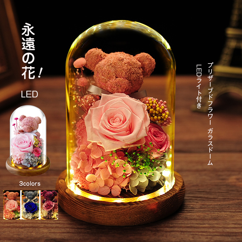 母の日 プレゼント プリザーブドフラワー ドライフラワー バラ 小熊プレゼント 記念日 誕生日 特徴は、生花を特殊加工したお花で、生花と変わらない美しさと手触り