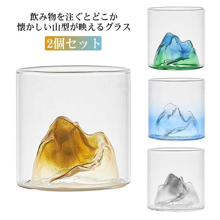 グラス 2個セット 底山 母の日 ガラス ロックグラス カップ 耐熱ガラス製 コップ 山形 ビール 酒器 おしゃれ ウイスキー 全7色 父の日 結婚式 還暦祝い 退職祝い ギフト