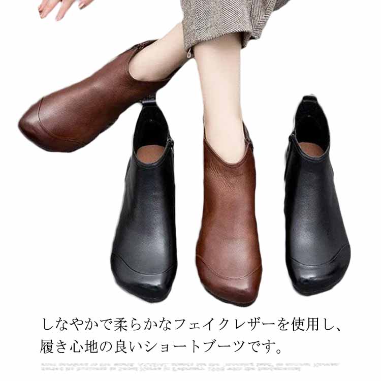 ショート丈 選べる2タイプ 薄手ブーツ 冬 ローヒール ブランド 裏起毛ブーツ 甲高 幅広 ワイド 秋 チェルシー