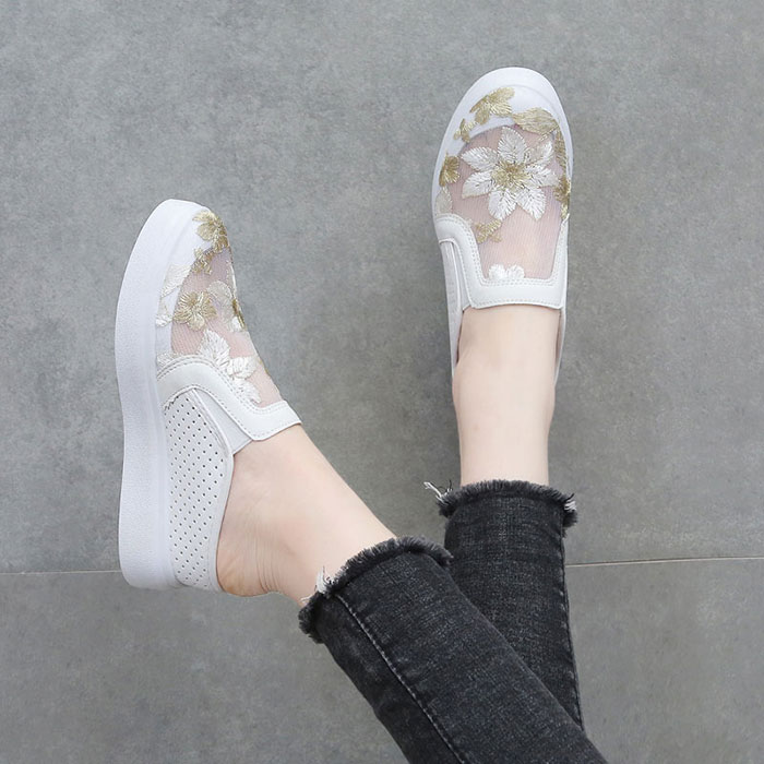 サンダル サボ レディース スニーカー スリッポン かかとなし 刺繍 透け感 ウェッジソール インヒールスニーカー インヒールスリッポン おしゃれ ホワイト ブラック 履きやすい ホワイト ブラック