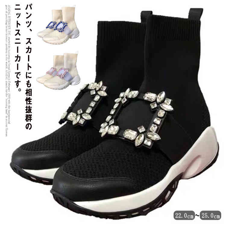 ビジュー付きニットブーツ 脚長効果抜群 ビジューニットスニーカー ビジュー ニット ブーツ エレガント 靴
