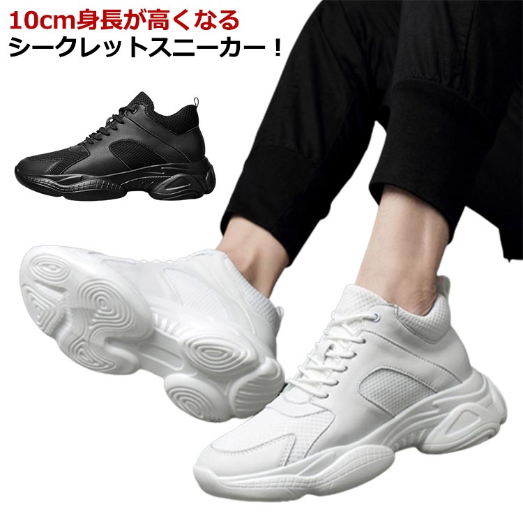 厚底 シークレットスニーカー メンズ シークレットスニーカー 10アップ 背が高くなる靴 身長アップ シークレット靴 運動靴 白
