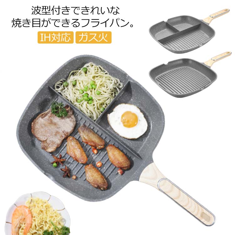 きれいな焼き目ができる 大きいサイズ フライパン 焦げ付きにくい 洗いやすい 焼肉 複数の料理が同時に作れる 直火 IH 3in1 マルチフライパン